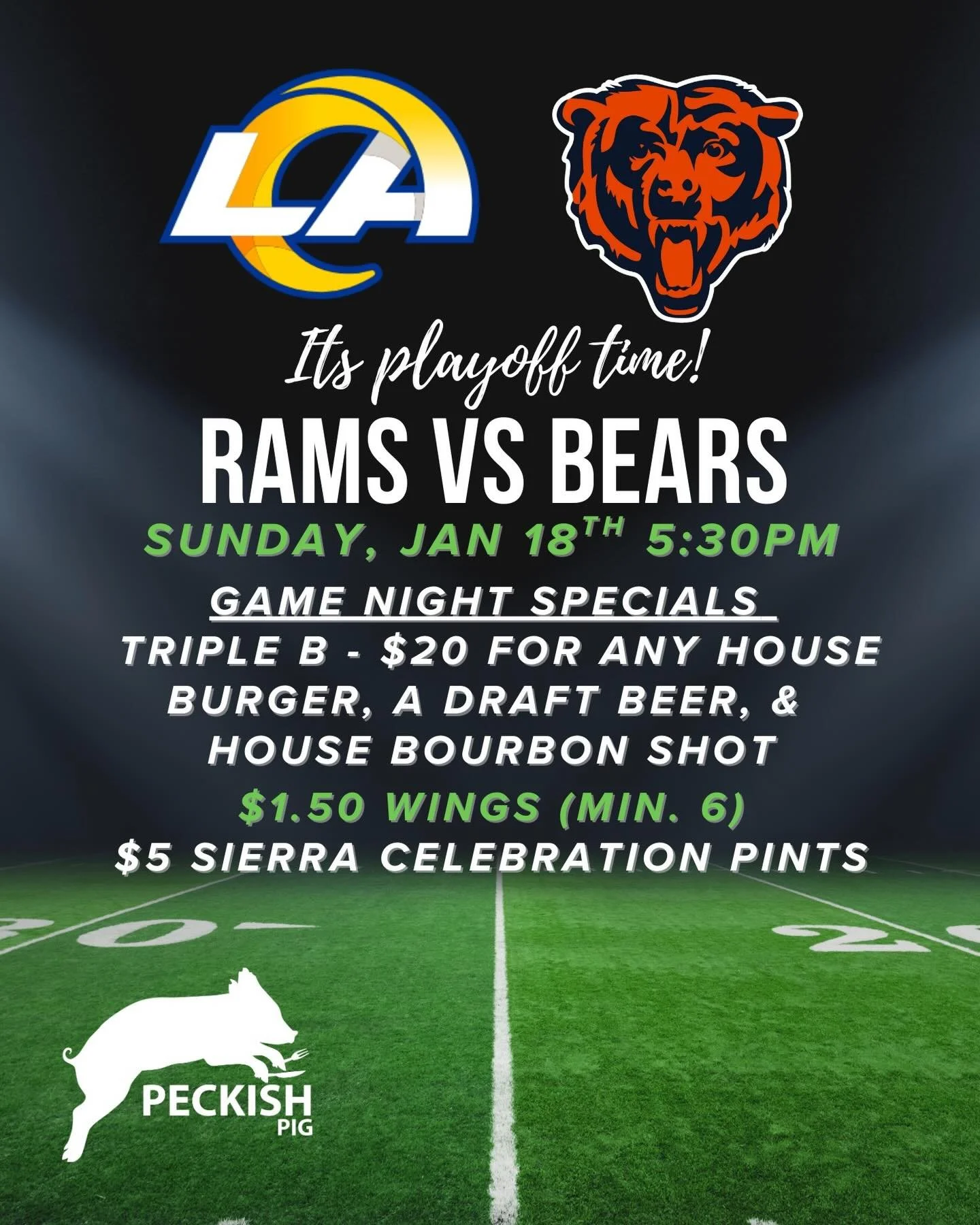 View fullsize TONIGHT 🚨 Come watch the bears do their thing against the Rams in the playoffs! We’ll have food and drink specials all night. Let’s go!! đŸģâŦ‡ī¸