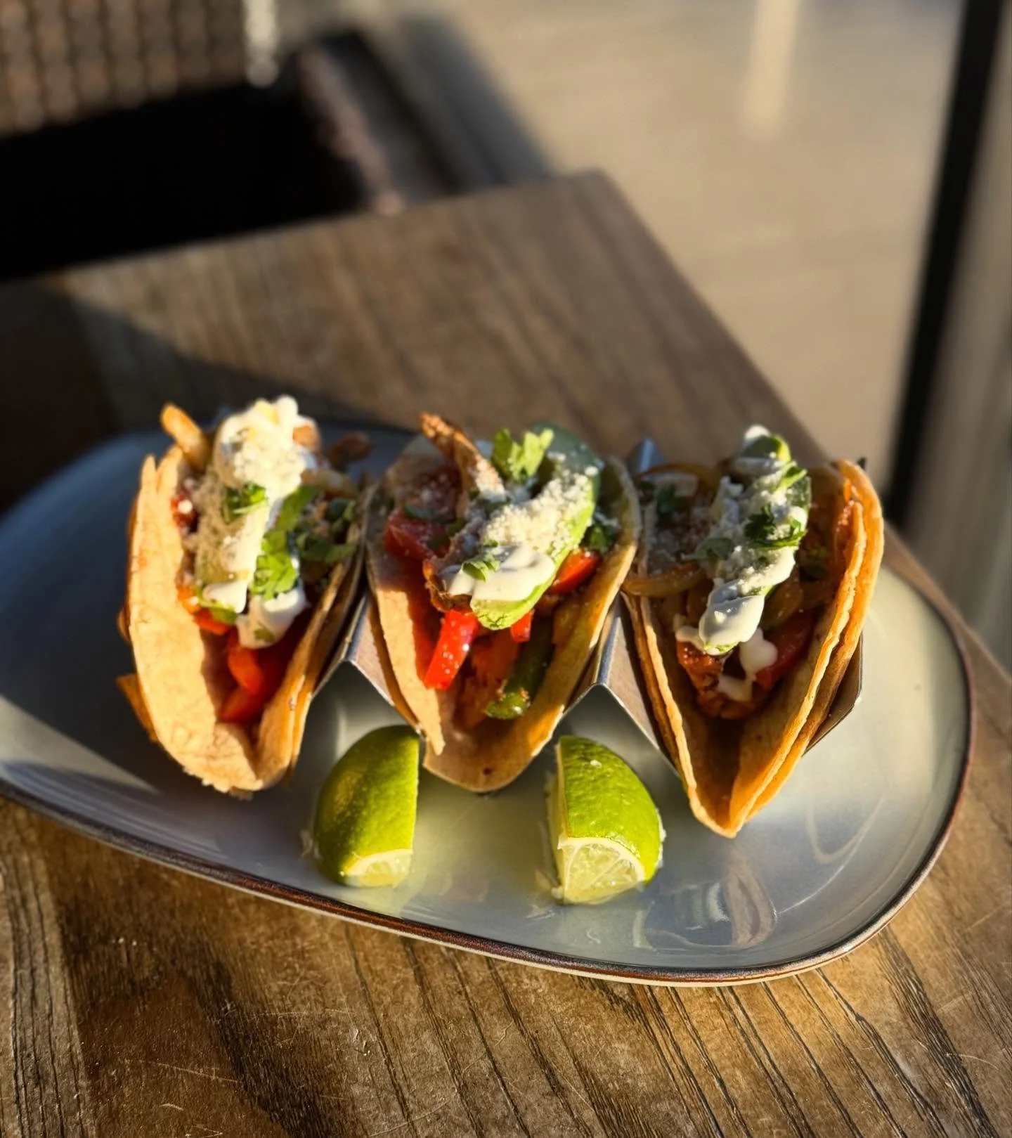 View fullsize These chicken tacos with roasted bell pepper, sour cream, avocado & cotija cheese will knock your socks right off đŸ’ĨđŸ§Ļ It’s #TacoTuesday come for the happy hour and stay for the tacos! 🌮 #FeelingPeckish